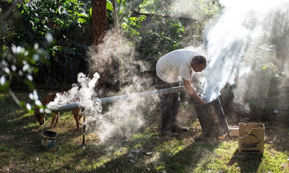 特迪(Teddy)是一家炭炉公司的老板,正在内罗毕视察一个新的烧窑。他说,外国投资者对木炭没有兴趣,他们更愿意关注可再生燃料,比如太阳能,因为“木炭是一个肮脏的词”。