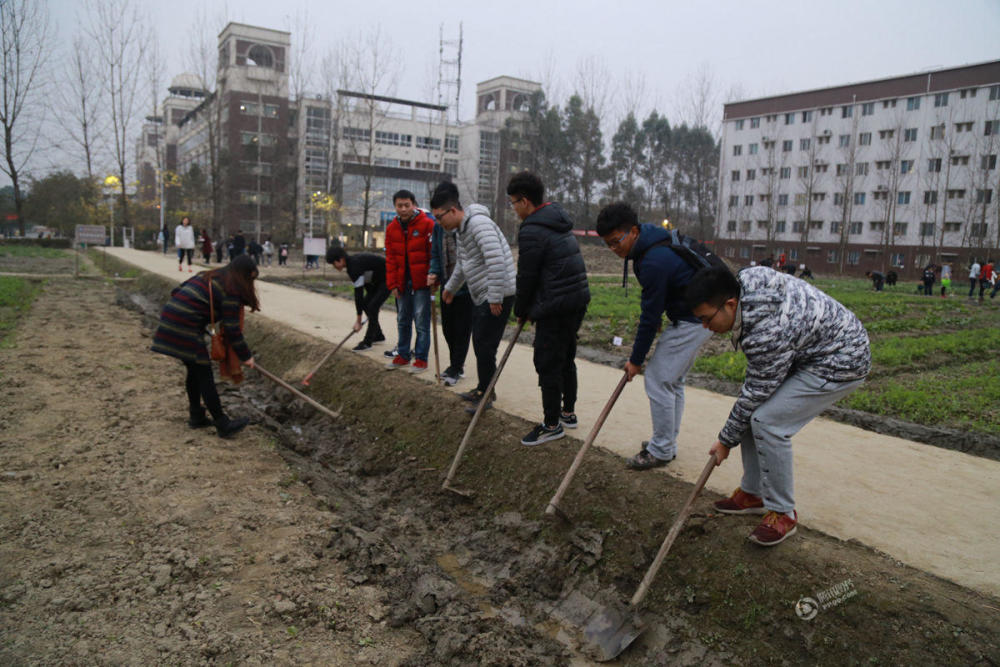 2016年12月13日,四川成都,随着课间铃声一响,四川大学锦城学院的学生们便来到了学校农场边,这次他们的课程不是测量而是种田。为了培养学生吃苦耐劳的品性,该校将农场搬到了校园里,将“种田”设置为学生们的必修课,要求学生亲自下田种地挣学分。据悉,四川大学锦城学院自2006年起,便开设了这门特殊的“种田”课程,要求每位在校生必须在农场里修满40个学时、总计两个学分的劳动课,才能毕业。