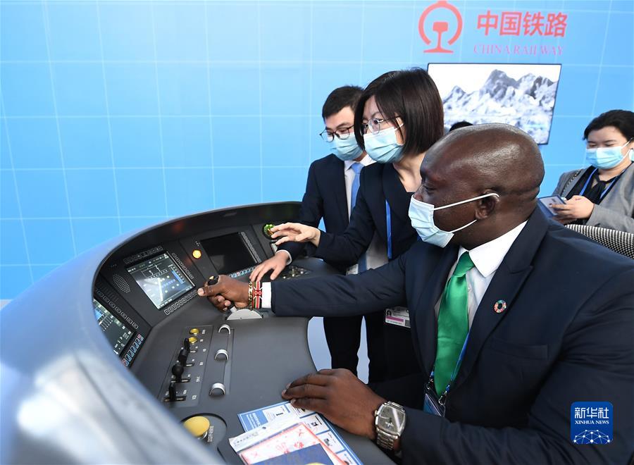 2021年10月14日,在北京国家会议中心,嘉宾体验中国高铁“复兴号”模拟驾驶。第二届联合国全球可持续交通大会于10月14日至16日以线上线下相结合方式在北京举行。新华社记者 李贺 摄