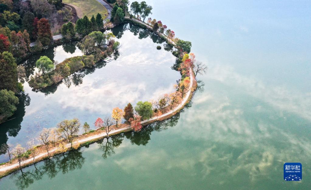 11月16日,南京市紫金山麓的前湖公园,水天一色,湖面似镜,树色斑斓,美如画卷。