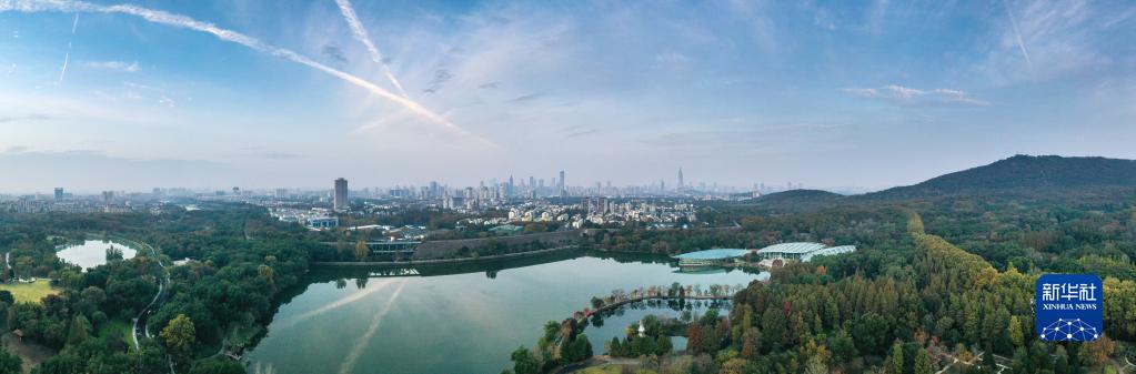 11月16日,晨曦中的南京前湖公园(无人机照片)。