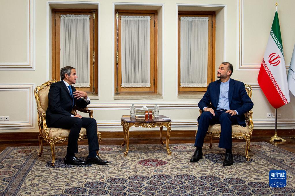 11月23日,伊朗外长阿卜杜拉希扬(右)在德黑兰会见到访的国际原子能机构总干事格罗西。