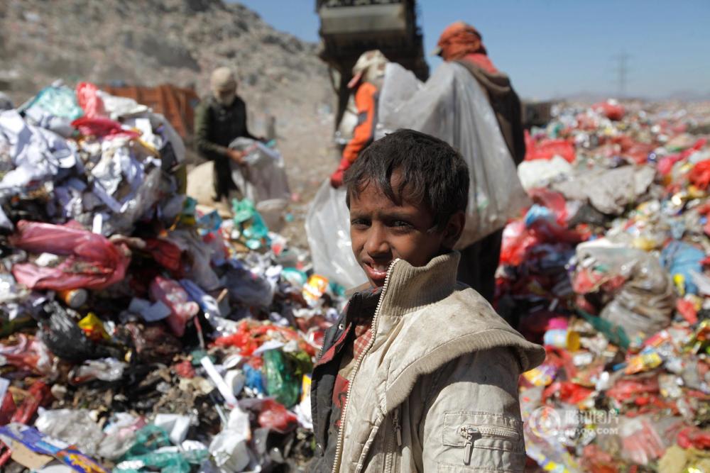 视觉中国 当地时间2016年11月16日,也门萨那,探访萨那垃圾站。 孩童在垃圾堆旁边玩耍。 为了讨生活,他们不但得忍受垃圾发出的恶臭,还得冒着可能感染疾病的风险。 垃圾堆也“吸引”了不少家庭举家迁移到垃圾弃置场附近,以方便他们来这里拾荒,寻找塑料和玻璃等任何可以卖的东西来赚钱。 捡拾垃圾的孩子。 也门萨那垃圾站里的一条小河。 也门萨那一眼望不到头的垃圾山。