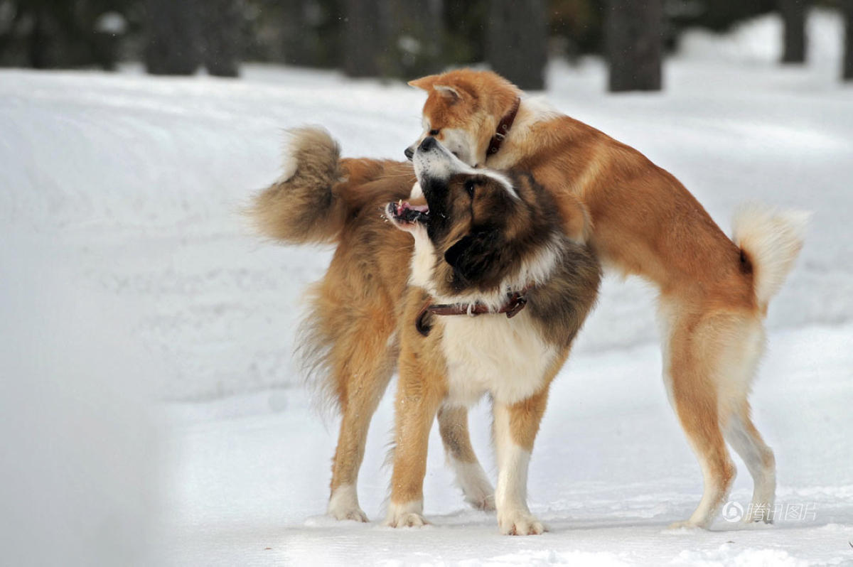 图为2013年3月,莫斯科郊外,“梦”与“巴菲”在雪地里嬉戏。