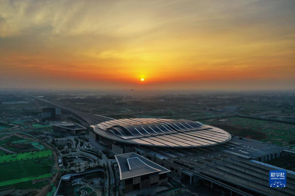 图四 这是京雄城际铁路雄安站(7月1日摄,无人机照片)。新华社记者 牟宇 摄