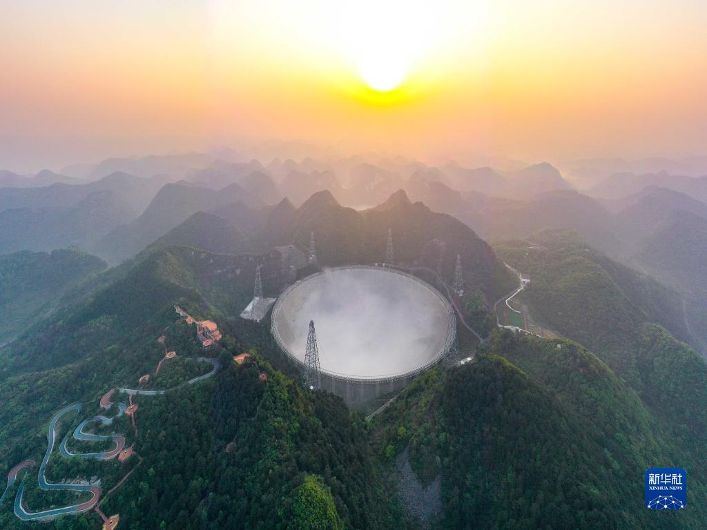 图五 3月31日清晨拍摄的“中国天眼”全景(维护保养期间拍摄,无人机照片)。新华社记者 欧东衢 摄