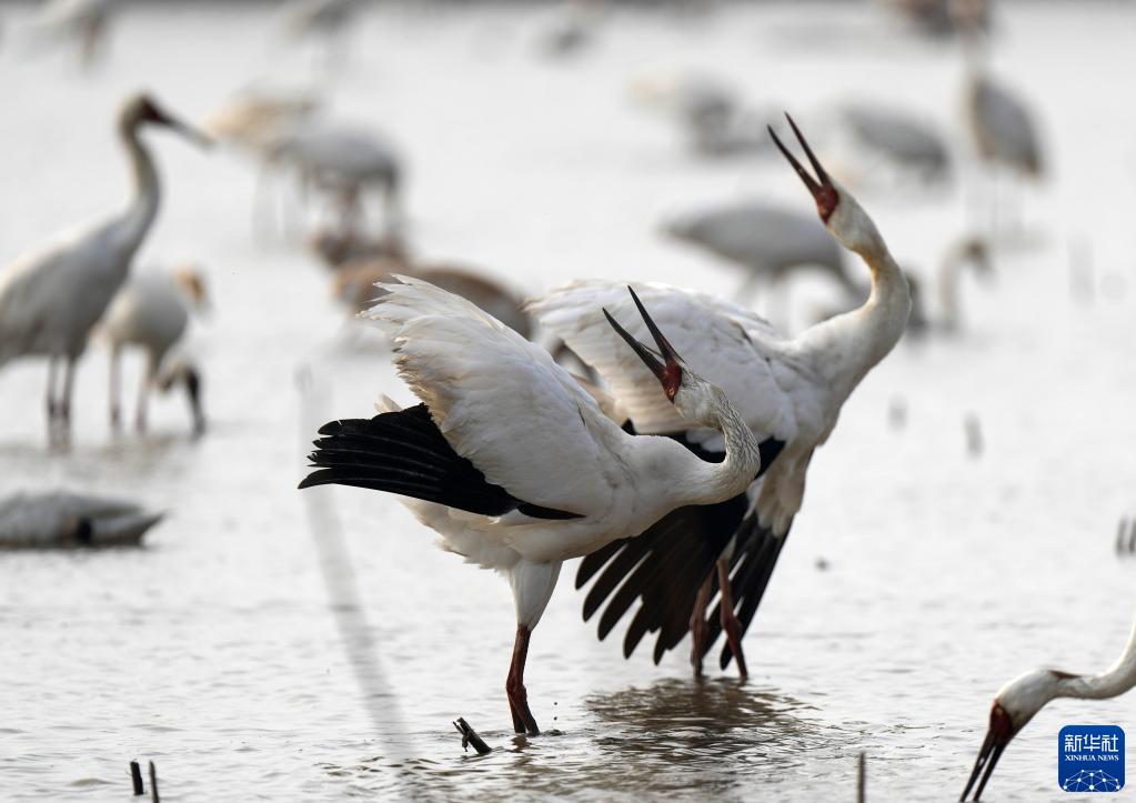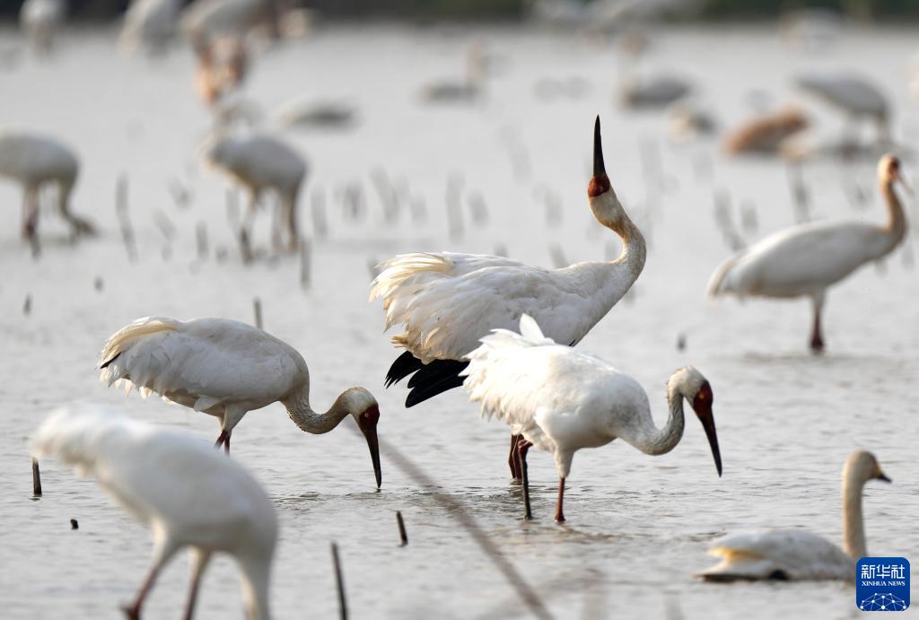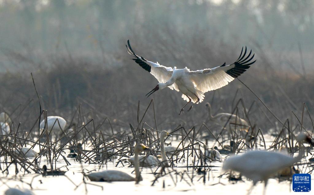 进入冬季,鄱阳湖迎来大批越冬候鸟。最新监测数据显示,截至11月28日,抵达鄱阳湖的越冬候鸟有63.7万余只。其中国家一级保护动物7种,包括白鹤、白头鹤、黑鹳、青头潜鸭等。