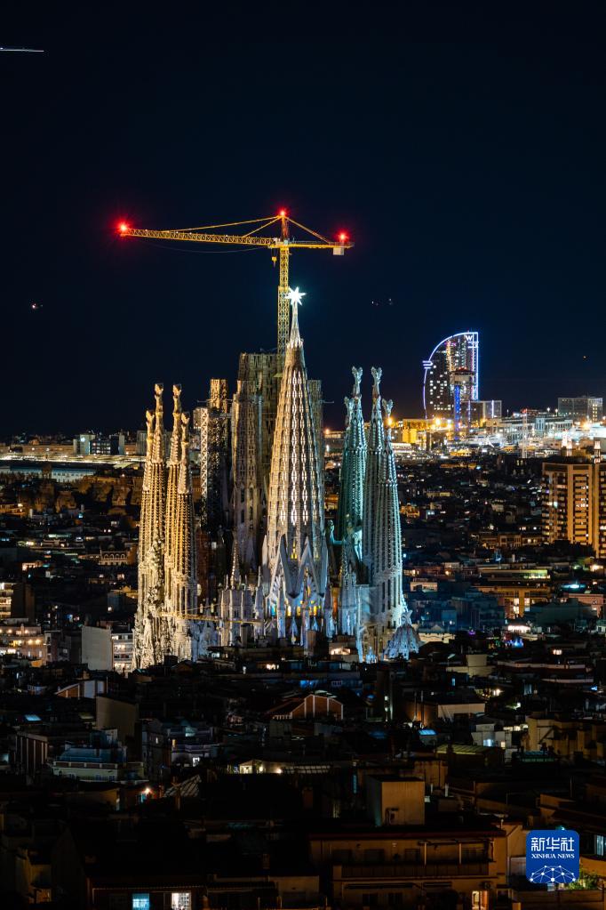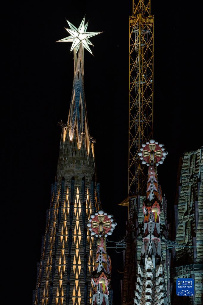 西班牙巴塞罗那地标建筑圣家族大教堂(又称圣家堂)上的塔顶之星于11月29日安装,12月8日点亮,标志着教堂建设“封顶”。圣家堂由西班牙著名建筑师高迪设计,从1882年开始修建至今,预计将于2030年竣工。