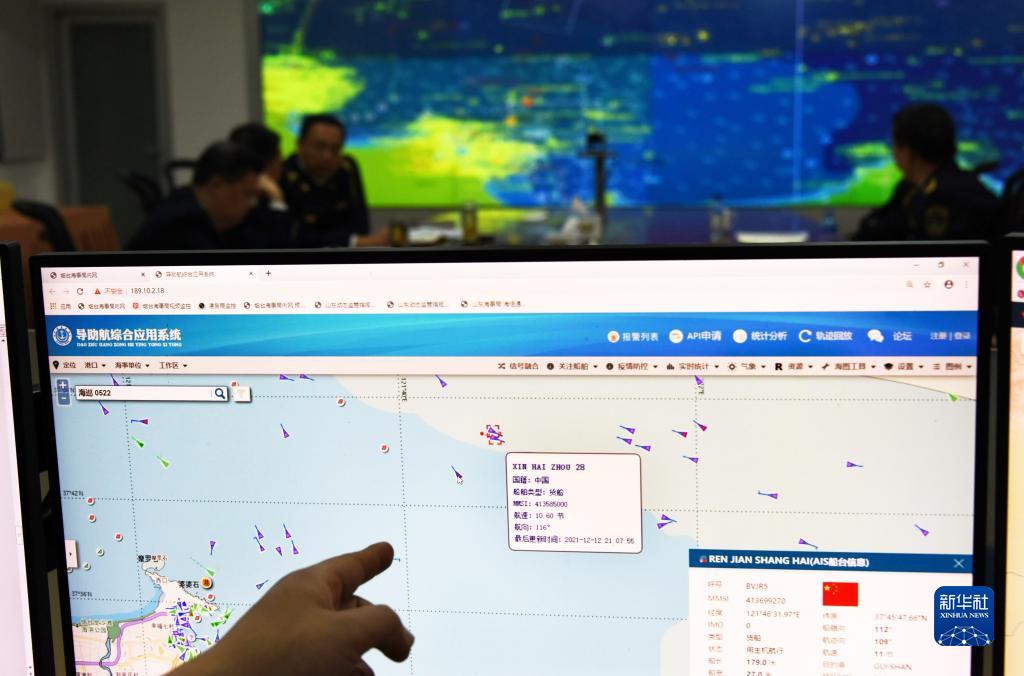 12月12日,烟台海事局工作人员在烟台市海上搜救中心进行搜救协调和调度。