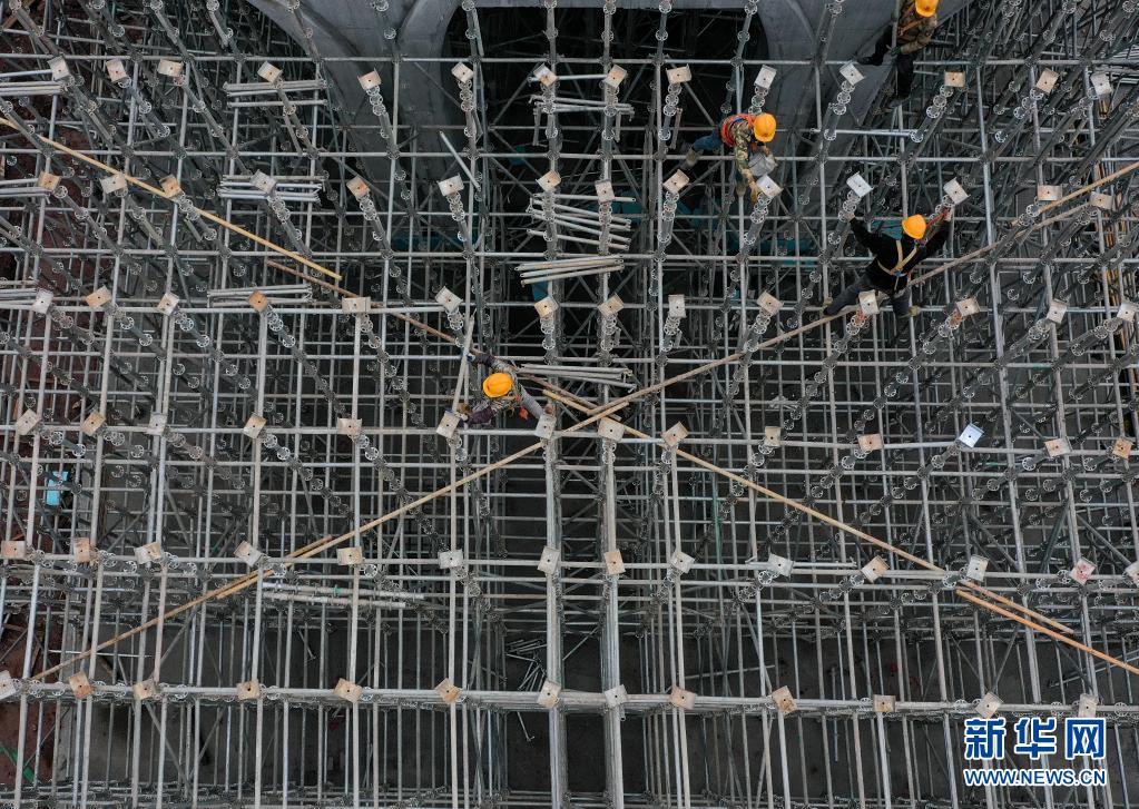 12月12日,工人在重庆科学大道一期工程施工现场作业(无人机照片)。
