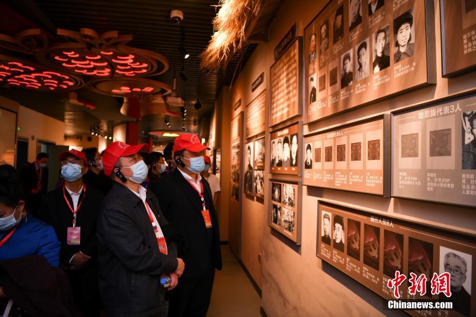 6.12月22日,民族团结誓词碑建碑70周年纪念会在云南省普洱市宁洱哈尼族彝族自治县举行。图为会后嘉宾在纪念馆参观。 中新社记者 刘冉阳 摄