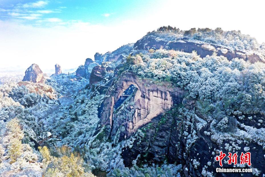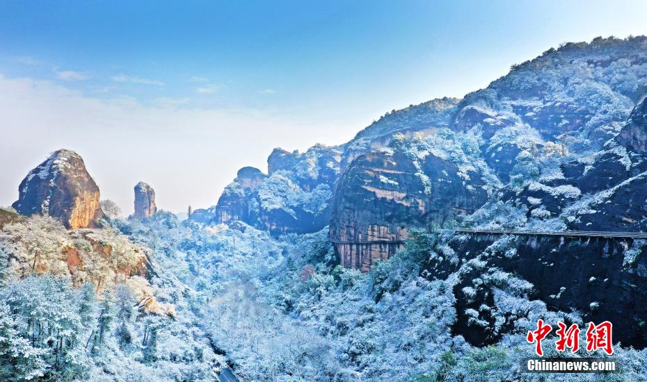 12月27日,航拍江西龙虎山景区雪后初晴。经过一晚的大雪洗礼,江西龙虎山景区群山之间银装素裹,美如画卷,宛如仙境。一座座山峰笼罩在氤氲的雾气里,错落有致的山地雪景如梦如幻,犹如一幅绝美的山水画卷。刘志琨 摄