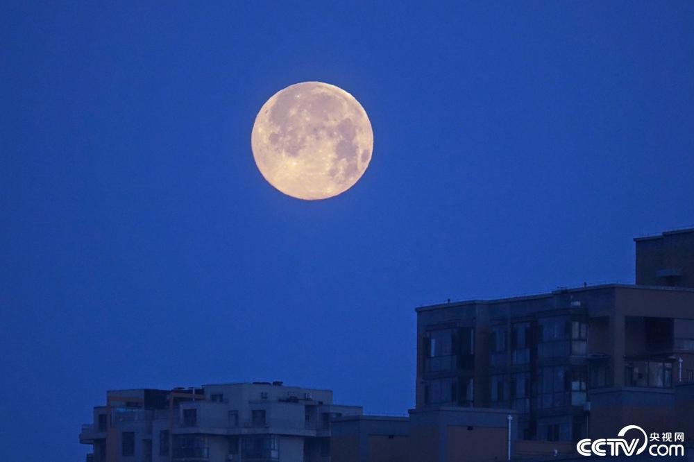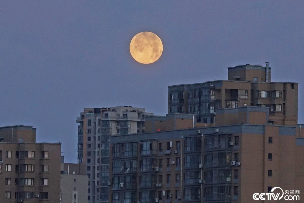 2022年1月18日7时48分,月球达到满月状态。这轮满月是农历辛丑牛年最后一轮满月,也是2022年第一轮满月,更是2022年度“最小满月”。图为1月18日,北京市,圆月高挂在当地夜空。视觉中国