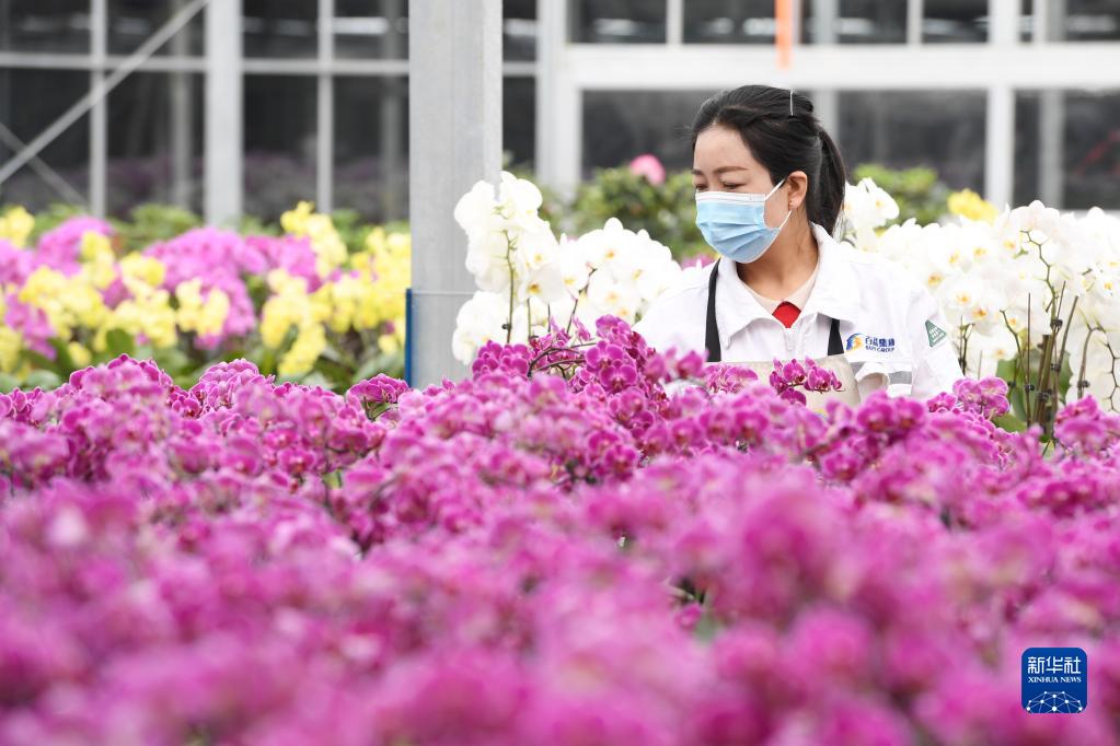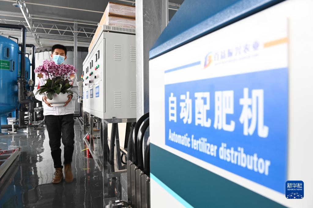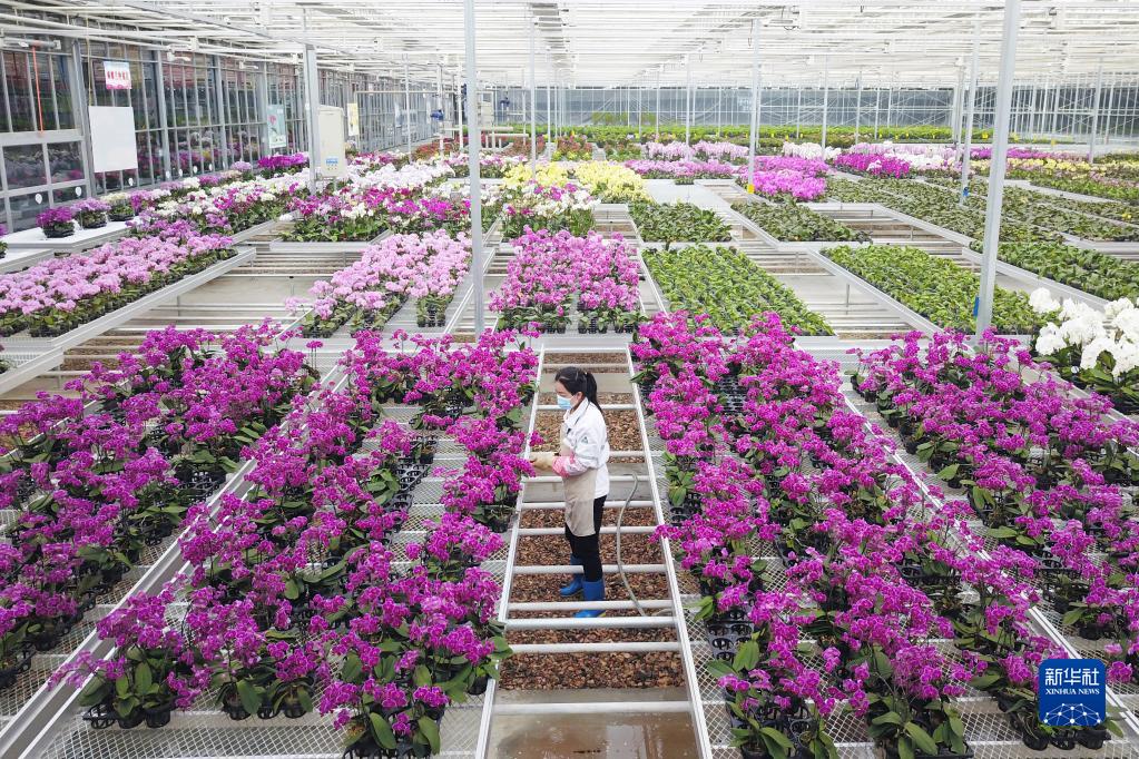 近年来,当地大力推进智慧农业建设,打造花卉数字农业示范园,采用智能控制系统、加热系统、补光系统等先进设备,通过高新技术及管理模式,开展以蝴蝶兰、高山杜鹃为主的盆花工厂化生产。据介绍,各类盆花年产300多万盆,产业带动当地500多名劳动力就业,有效增加群众收入。