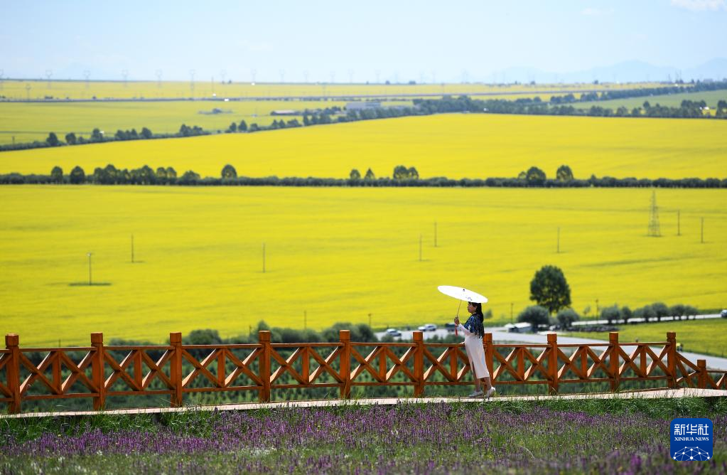??目前,祁连山南麓的青海省海北藏族自治州门源回族自治县境内万亩油菜花进入盛花期,连绵的花海吸引不少游客。近年来,门源县充分利用数万亩油菜地,加快推进“农业+旅游”的农旅融合新业态,打造赏花经济,发展生态旅游,逐步形成“农旅结合、以农促旅、以旅兴农”的产业格局。
