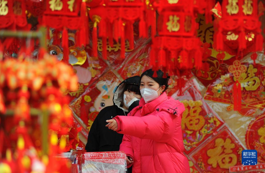 春节临近,各种年集热闹红火。人们选购年货,迎接新春佳节。