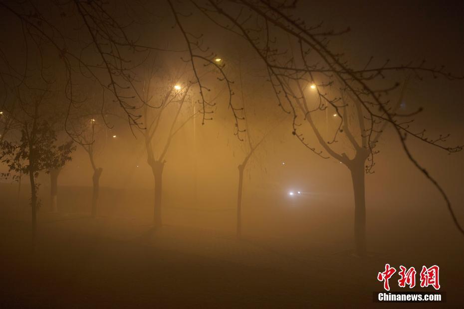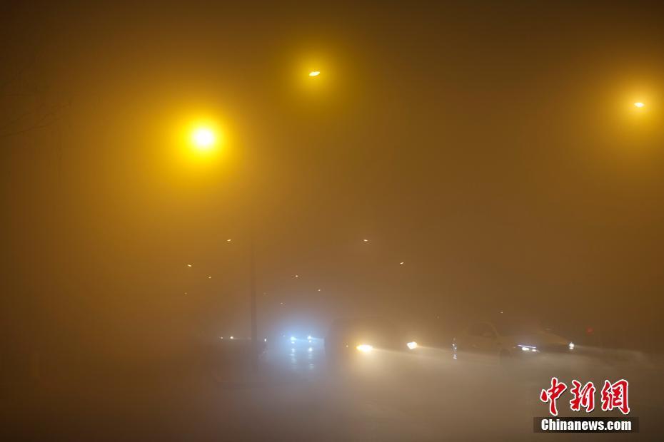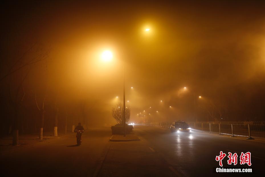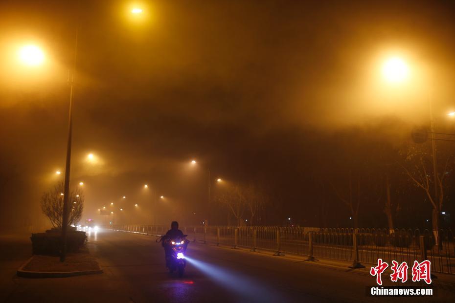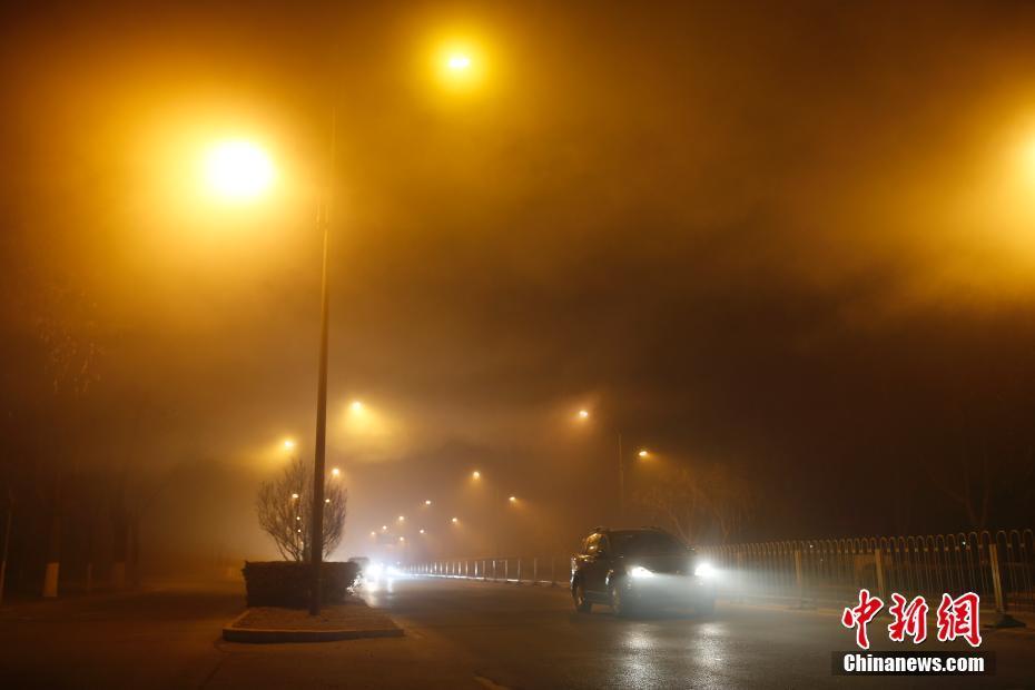 12月18日傍晚,北京持续雾霾天气,能见度低。