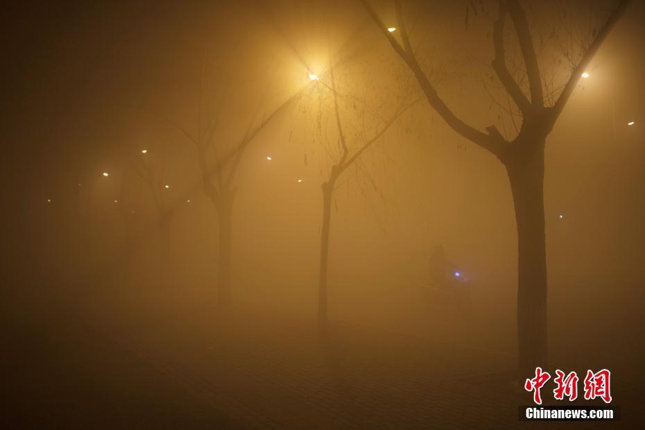 12月18日,北京市民在雾霾中出行,能见度极低。