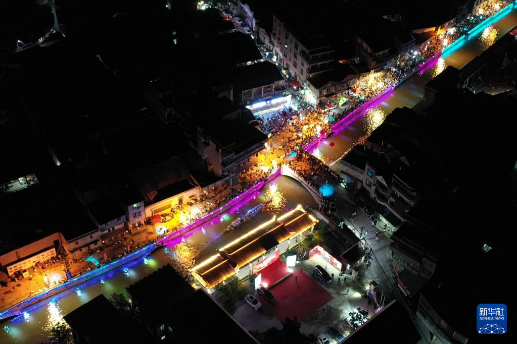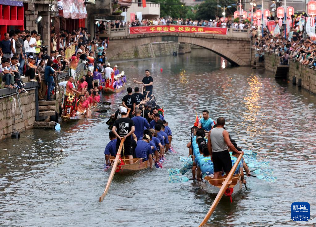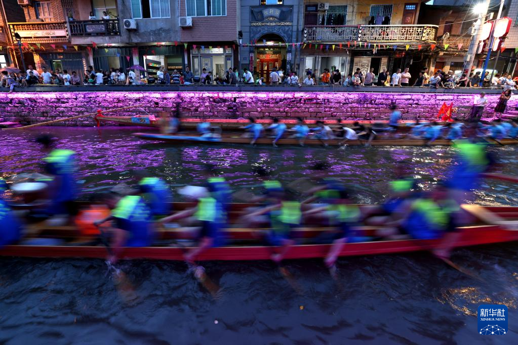 ??6月17日晚,在福建省福州市长乐区三溪村,数十艘龙舟在小溪中竞渡,南溪两岸及石桥上人潮如涌,热闹非凡。夜赛龙舟是福建福州长乐区三溪村独有的端午习俗,已经沿袭600多年。每年端午节前后,当地村民举行夜赛龙舟活动,借此祈盼风调雨顺、平安健康。