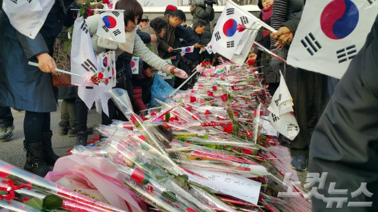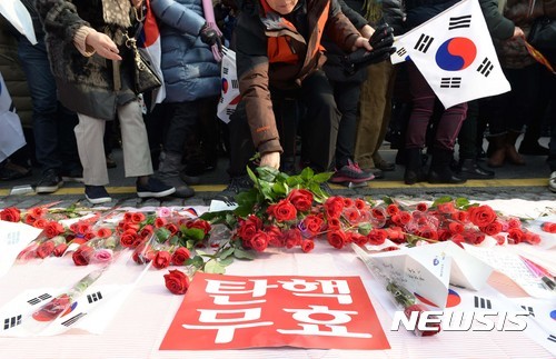 挺朴派随后还在韩国国立民俗博物馆前放置玫瑰,进行名为“百万朵玫瑰大游行”的集会。