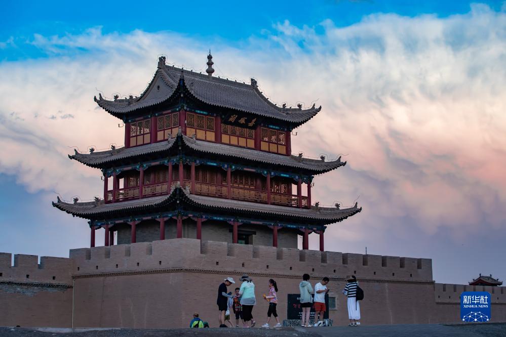 当日,位于甘肃河西走廊的嘉峪关市在一场疾风骤雨后,天空放晴,远处祁连雪山与嘉峪关关城交相辉映,构成一幅壮美画卷。