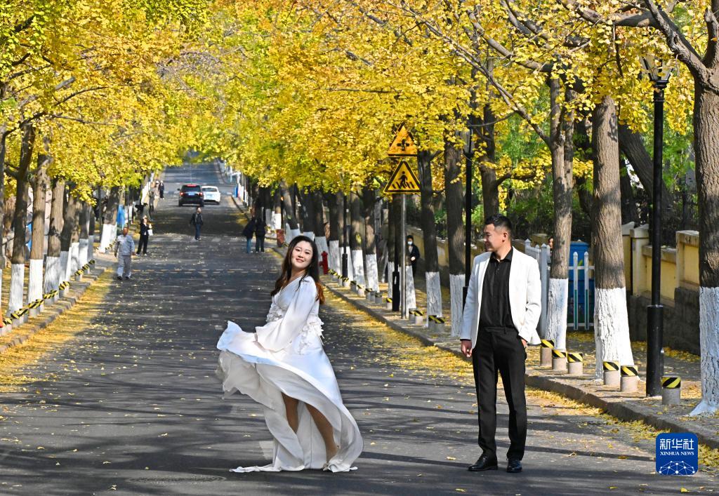 初冬时节,青岛八大关景区银杏大道染满金黄,不少市民和游客纷纷前来赏叶、观景,享受冬日暖阳带来的惬意与美好。