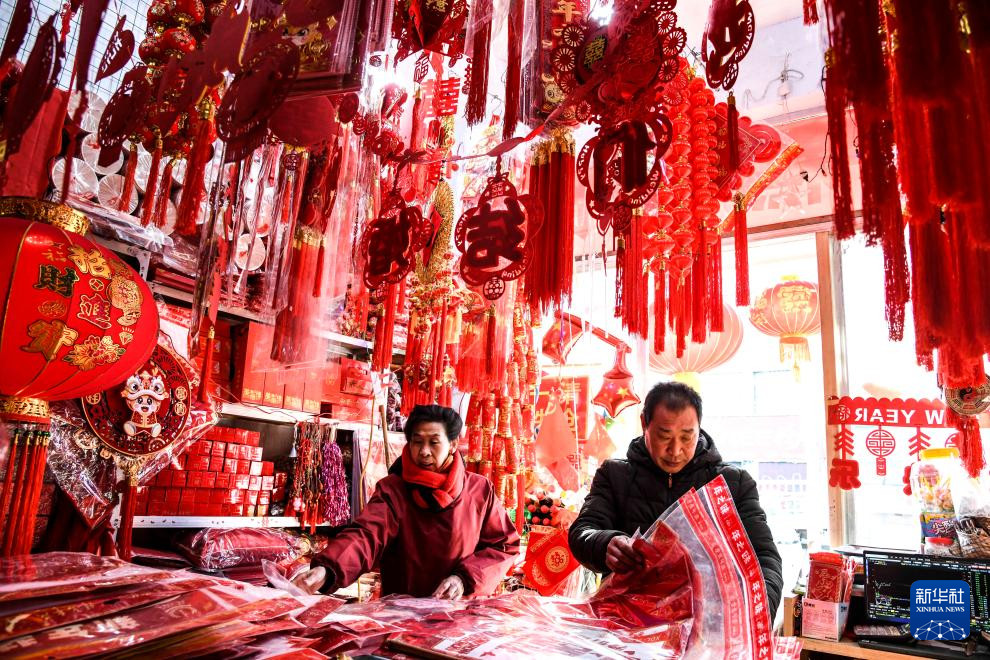 ??春节临近,各地张灯结彩。人们逛花市、赏花灯、置办年货,年味渐浓。