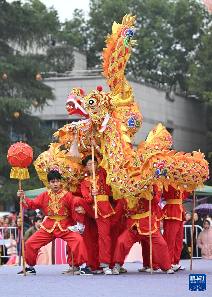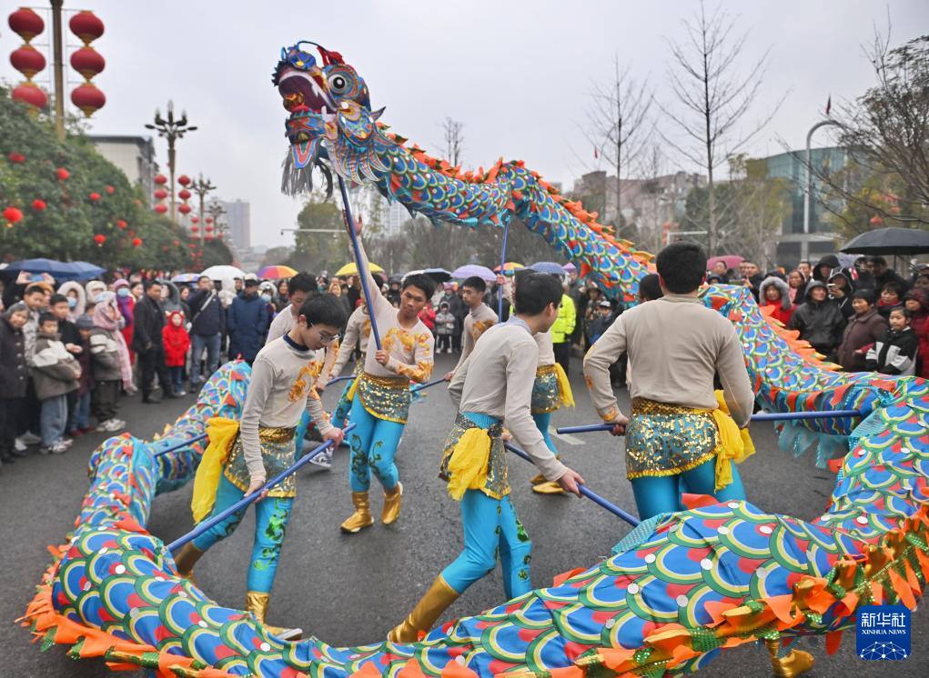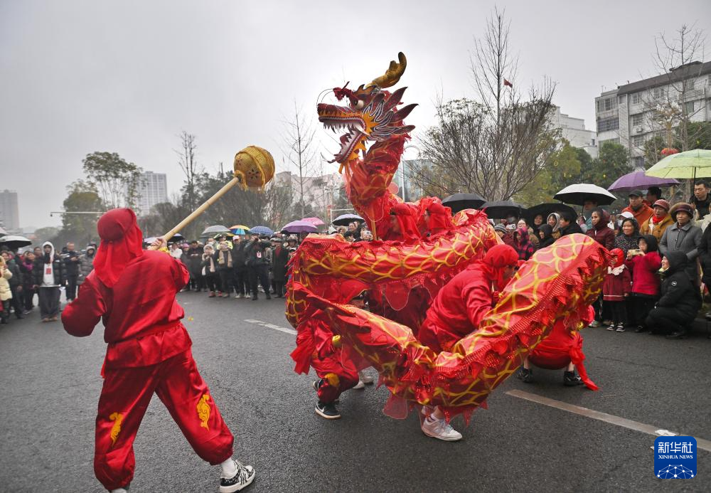 2月12日,在四川省泸州市泸县,来自四川省内外龙舞队和泸县20个镇(街道)特色龙舞队同台竞演、巡游,让群众欢度元宵佳节的同时感受传统文化魅力。