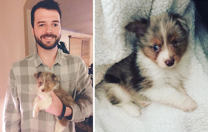 图中的这名男子由于意外一只眼睛不幸失明。他不想和他有同样遭遇的狗狗没人疼爱,便收养了它。现在,他们是最好的朋友。
