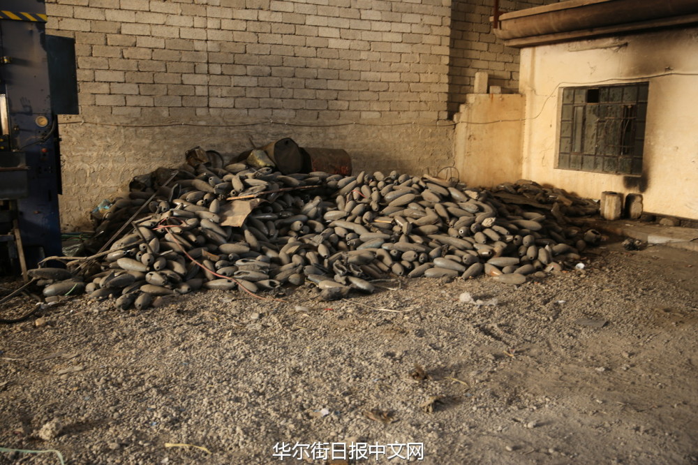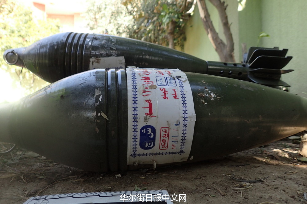 图为“伊斯兰国”制造的迫击炮炮弹。