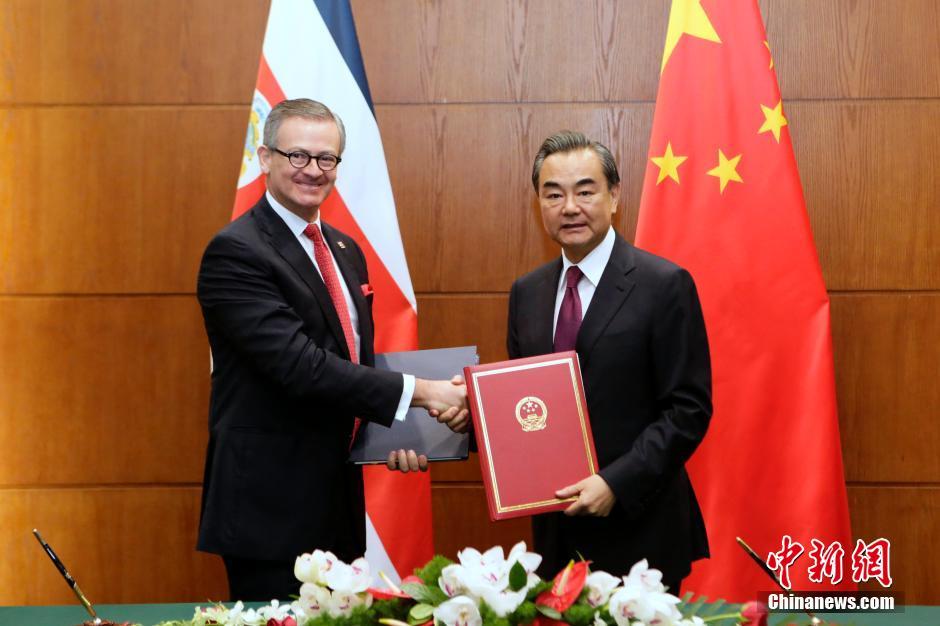 7月18日,中国外交部长王毅在北京与到访的哥斯达黎加外交部长曼努埃尔·冈萨雷斯·桑斯举行会谈,并在会谈后共同签署《2016年至2020年中华人民共和国政府与哥斯达黎加共和国政府合作共同行动框架》。中新社记者 李慧思 摄