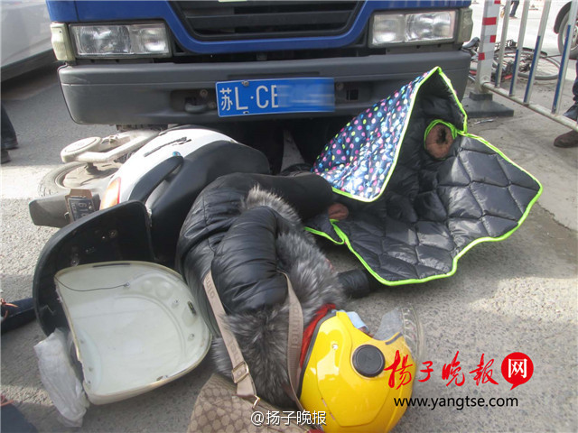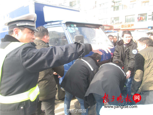 28日下午1点30分,一辆厢式货车沿镇江新区丁卯桥路由西向东行驶,当该车行驶到谷阳新村附近时,与一辆沿丁卯桥路由南向北的电动车发生相撞。接到报警后,镇江新区交警大队事故处理民警陶长生立即赶到现场,发现电动车被卡在小货车前部车底,而女骑手李某的右腿部则被压在电动车下面动弹不得,并不断发出痛苦的呻吟声,随后赶来的120救护人员也束手无策。