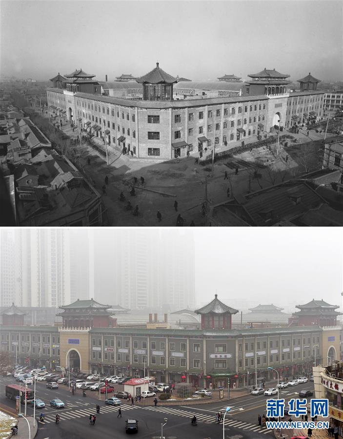 上图,这是1985年元旦开始营业的天津南市食品街(新华社记者宋佑民摄)。下图,2017年1月1日拍摄的天津南市食品街(新华社记者岳月伟摄)。 新华社发