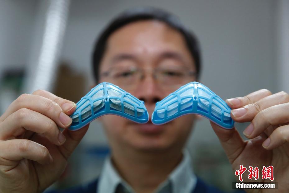 刘勇教授展示使用前后鼻罩滤芯。