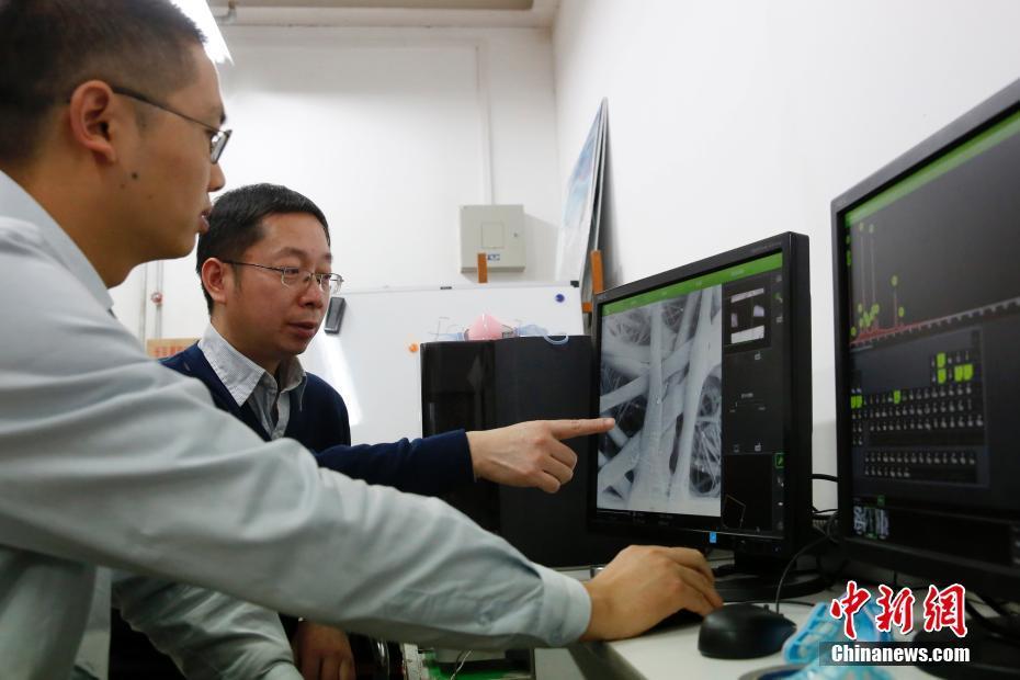 1月3日,北京化工大学高分子纳米复合材料实验室刘勇教授通过台式扫描电子显微镜,观察近期使用后的防霾鼻罩滤芯上采集的雾霾颗粒,以及分析雾霾颗粒里面含有的各种元素。近日,北京持续雾霾天气。图为防霾鼻罩滤芯上采集的雾霾颗粒。中新社记者 韩海丹 摄