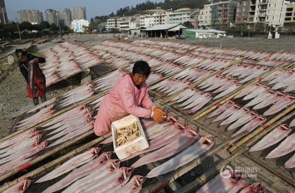 村民忙着晾晒各种鱼干、鱼鲞供应春节市场。