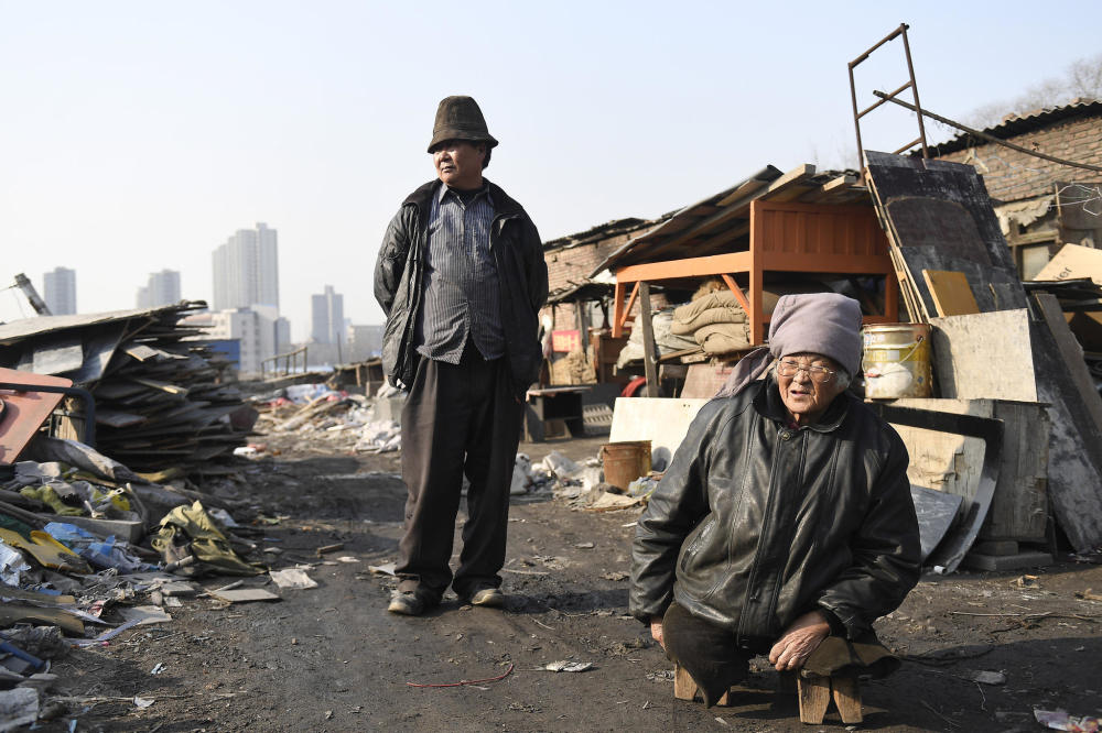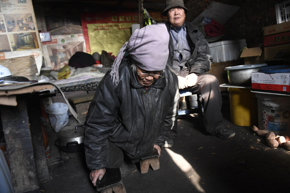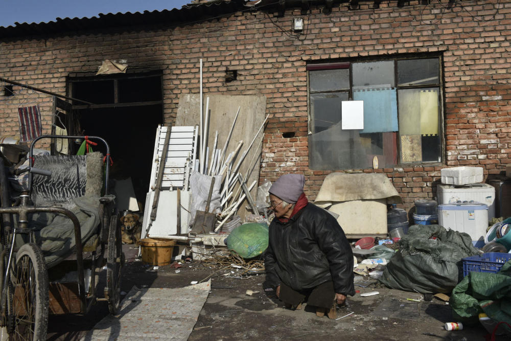 在山西省太原市正在拆除的城中村北张村内,有一片简陋的平房区,这里住着十余户以拾荒为生的外地农民工,年近八旬的无腿老妪曹会会便是其中一员。随着轰隆隆的机械拆解声在周边阵阵作响,这些拾荒人在寒冬腊月迎来买卖旺季,而无腿老妪曹会会却高兴不起来,因为她租住的平房也即将拆除,行动不便的她带着一个儿子,为找一处低廉的租住房犯起了愁。(图:视觉中国)