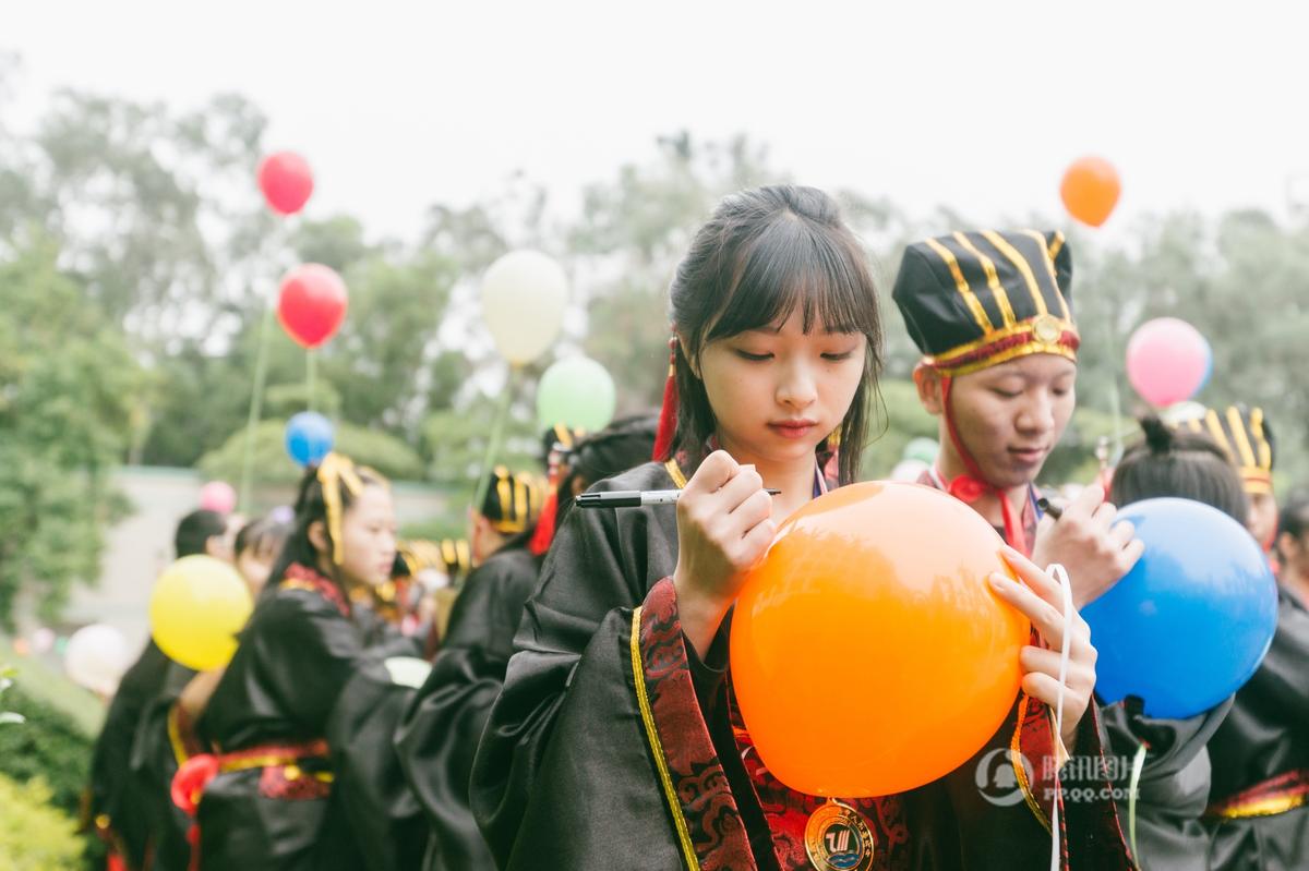 学生放飞写满祝福和希望的气球,通过这一系列特殊的仪式,学生们完成向成人的过渡,以传统方式宣告成年。