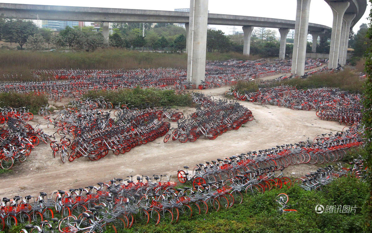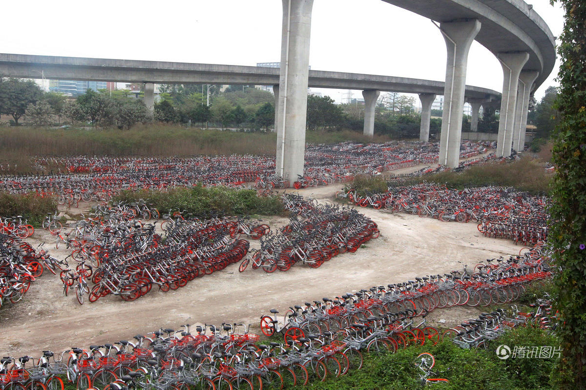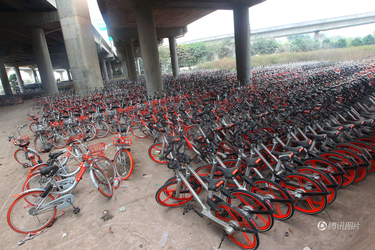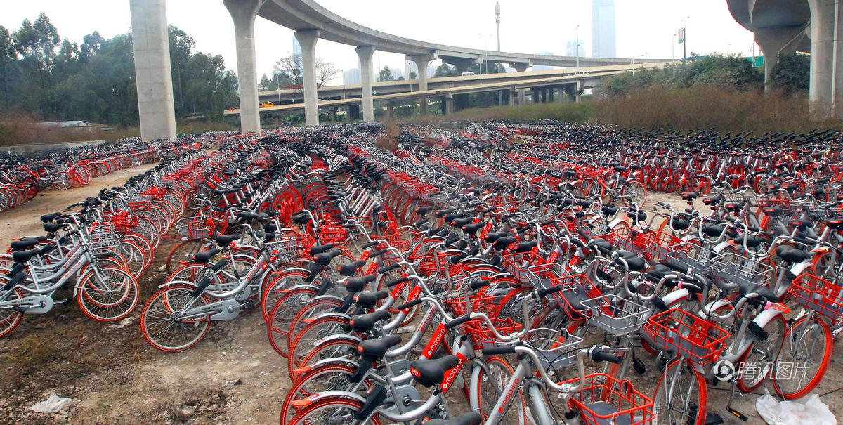 广州立交桥下停上千辆共享单车 或为故障车