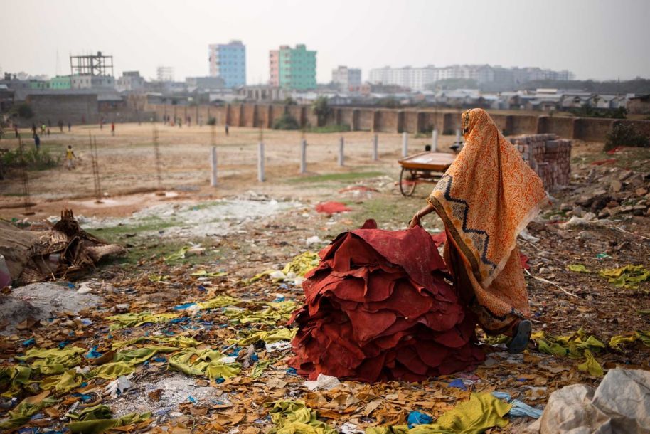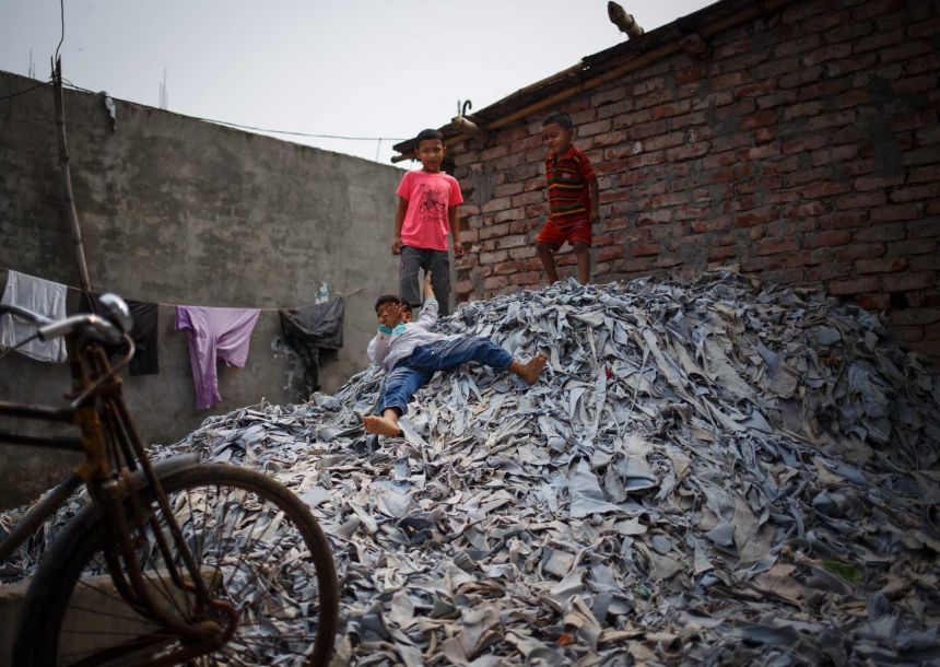 据美国《连线》杂志1月12日报道,在哈扎里巴县,流淌着的布里甘加河一直通往孟加拉国首都达卡。河流的名字在乌尔杜语里面是“数千园林”的意思,但是在这里你并不会看到太多的绿色。相反,你会在街上看到一堆一堆的皮革和皮革内衬。