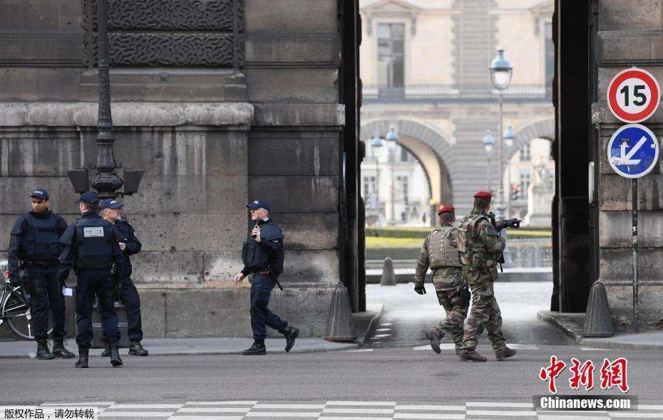 警方称,该地区已经被疏散。图为法国警方在卢浮宫周边警戒。