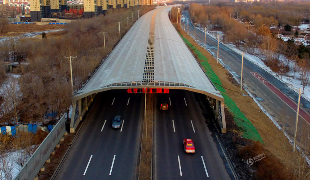 2017年2月5日,沈阳南二环千米全封闭式降噪“路罩”竣工投入使用,引起市民强烈好奇。据了解,该降噪“路罩”为东北首个,全长近千米,横跨26.5米,高5-8米。视觉中国