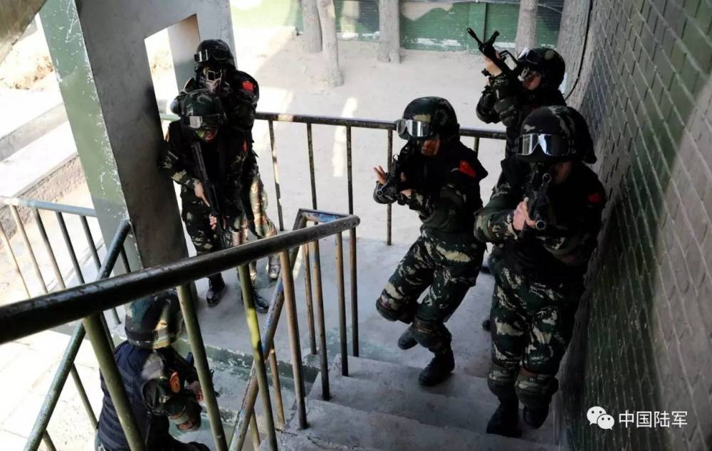 突击小组正在进行班组协同反恐训练。