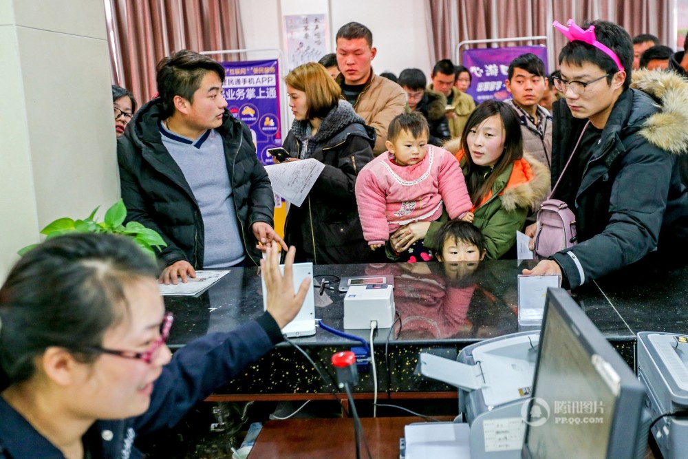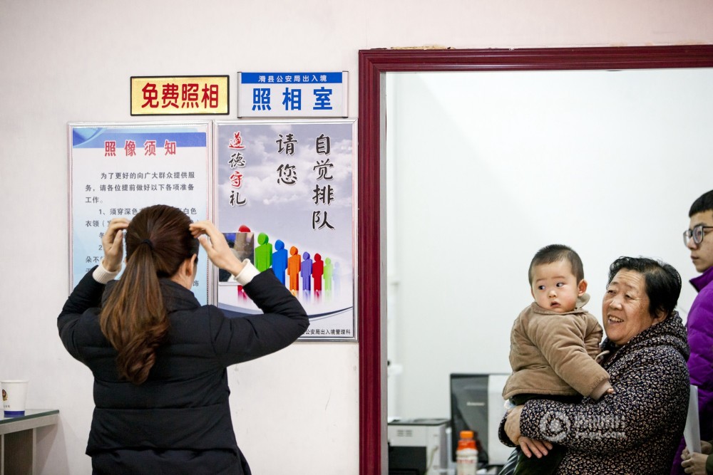 人们在县公安局出入境便民服务大厅办理有关手续。