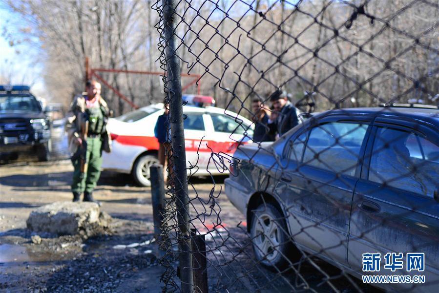 这是2月9日在阿富汗首都喀布尔拍摄的爆炸现场被炸断的铁丝网。