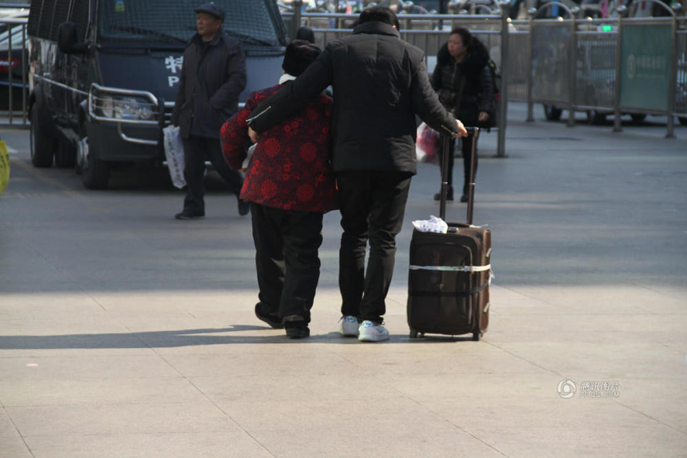 老人与亲人回家。