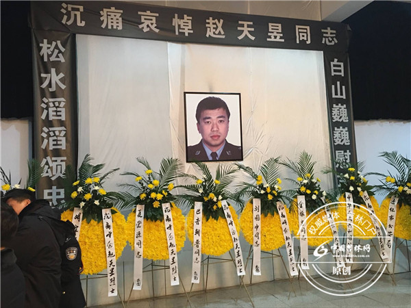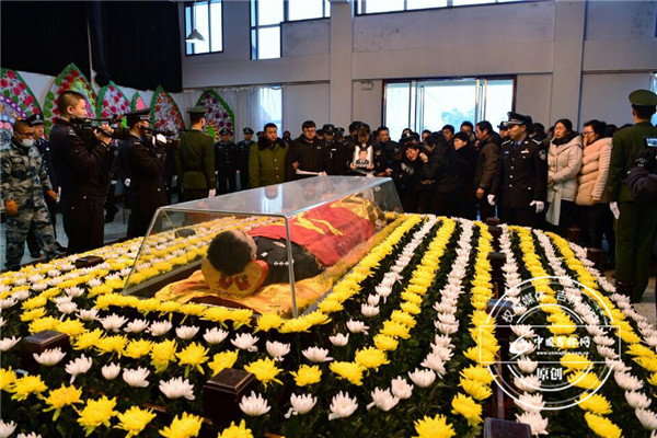 各乡镇派出所代表、武警官兵代表,赶到殡仪馆遗体告别厅为赵天昱警官送行。
