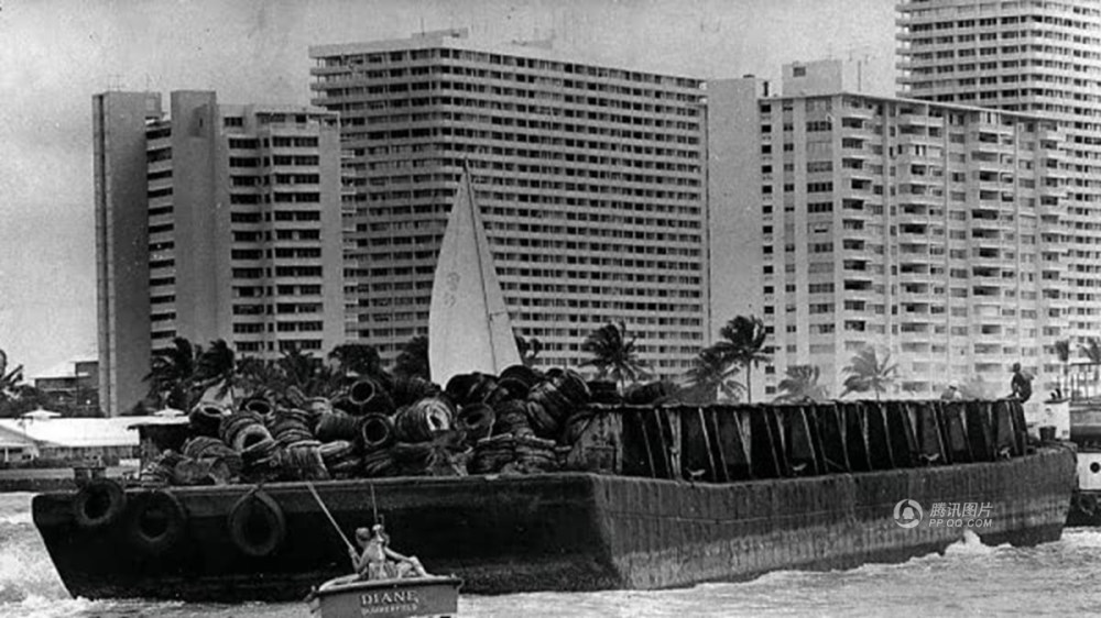 这个工程在1972年开始的时候非常隆重,100多艘船把满船的轮胎源源不断地扔进海里。