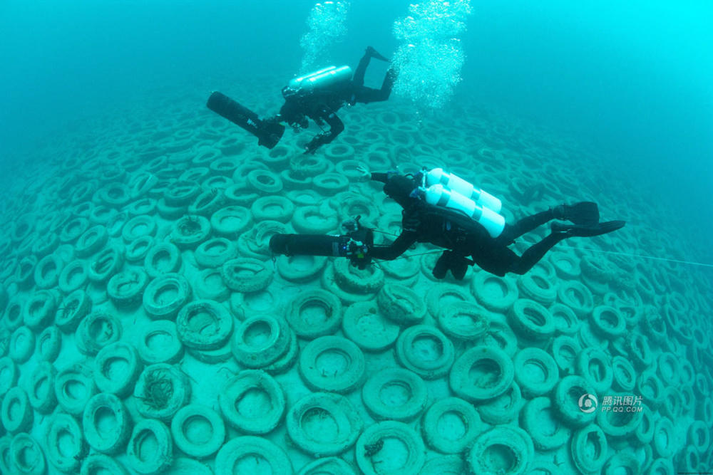 当时人们希望用环保的方式来处理轮胎。大量轮胎被丢入海中,人们希望这样能够吸引鱼类,并为珊瑚的生长提供基础。