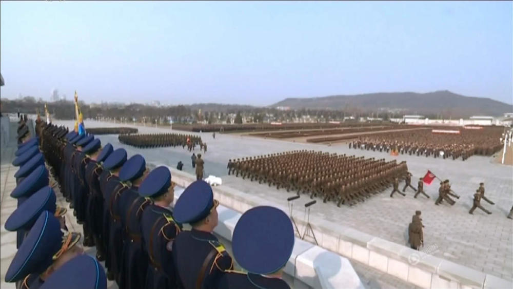 2月16日,据朝鲜电视台报道,朝鲜军队举行誓师大会,向朝鲜劳动党委员长金正恩表忠诚,纪念金正日诞辰75周年。